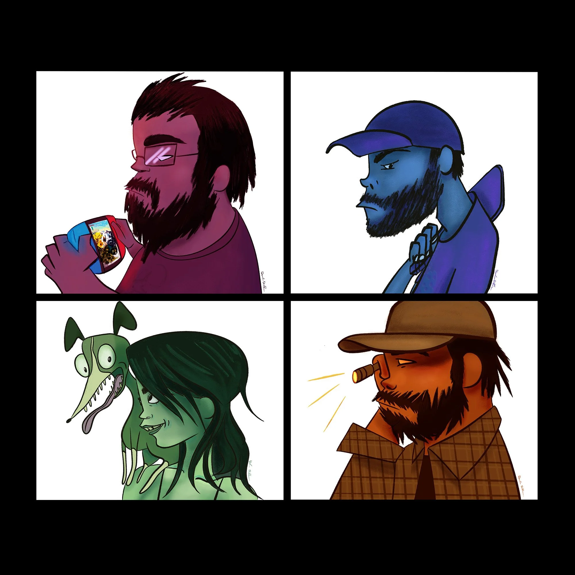 Portraits of us, inspired by the work of Jamie Hewlett on the Gorillaz “Demon Days” album cover.